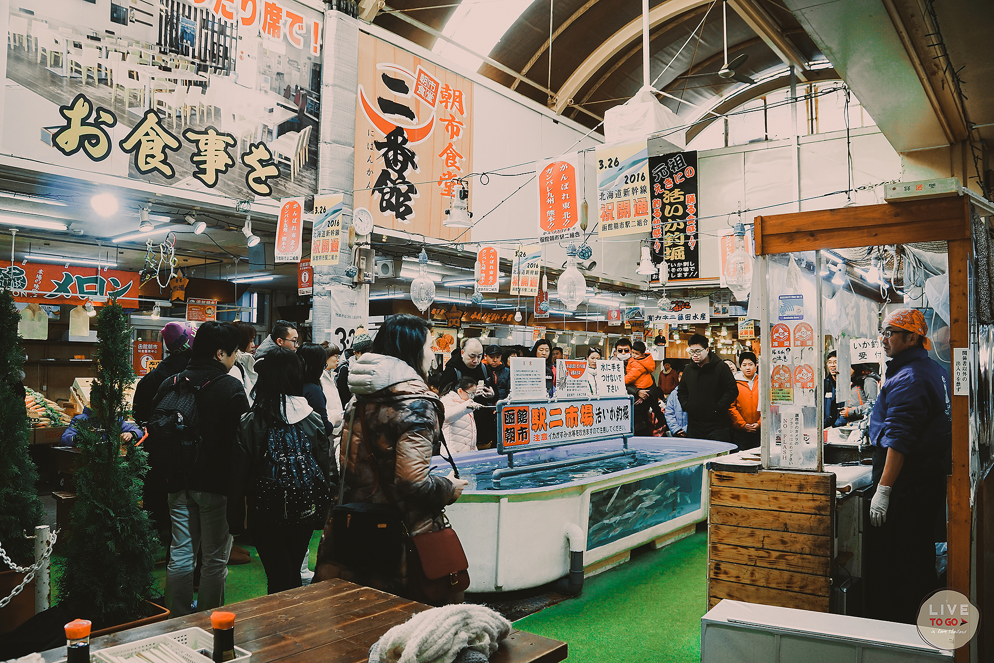 ตลาดเช้าฮาโกดาเตะ Hakodate Morning Market เวลาเปิด-ปิด: เปิดตั้งแต่ 5:00-12:00 (ฤดูหนาว เปิด 6:00) วันปิดทำการ: เปิดทุกวัน วิธีการเดินทาง ใกล้กับสถานีรถไฟ JR Hakodate Station เดินไปทางขวา แล้วข้ามถนนไป 1 บล็อก