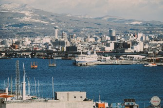 ใครทนอากาศหนาวไม่ไหวก็มานั่งชมวิวด้านใน สำหรับการเดินทางมาขึ้นไปบนยอดเขาฮาโกดาเตะ สามารถขึ้นได้ 3 ทางก็คือ 1.เดินป่า อันนี้ต้องช่วงฤดูร้อนหรือใบไม้ผลิ 2.นั่งรถและ 3.ขึ้นกระเช้า Ropeway แต่วิธีที่แนะนำก็คือ ขึ้นกระเช้า Ropeway เพราะนอกจากจะสะดวกสบายแล้วยังสามารถชมวิวสวยๆอีก