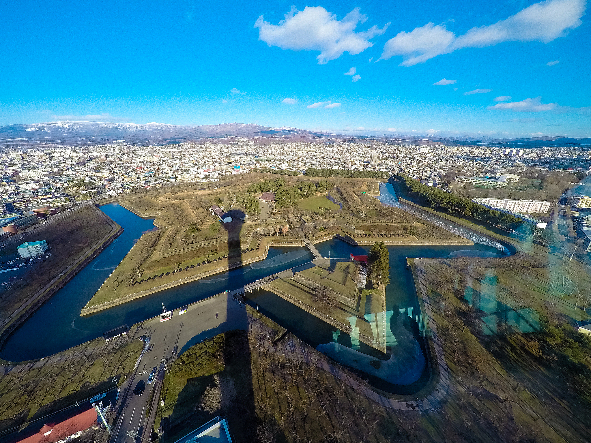 เราเดินทางต่อไปที่ หอคอยโกเรียวคาคุ สามารถขึ้นไปชมด้านบนได้ มีจุดชมวิวซึ่งสามารถมองเห็นวิวในมุมกว้างของป้อมปราการรูปดาวอันสวยงาม ขึ้นไปด้านบนแล้ว จะเห็น ป้อมปราการรูปดาวขนาดใหญ่